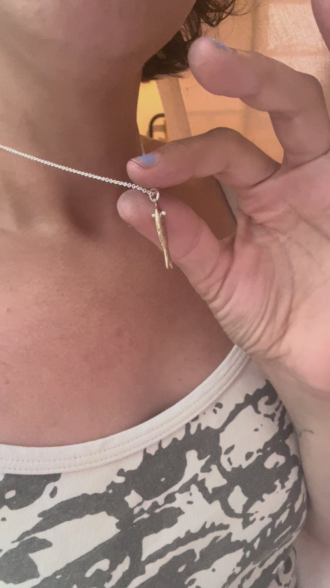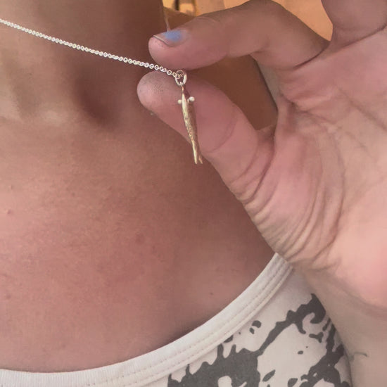 Hand-carved sterling silver fishy with 10k gold wiggly eye balls